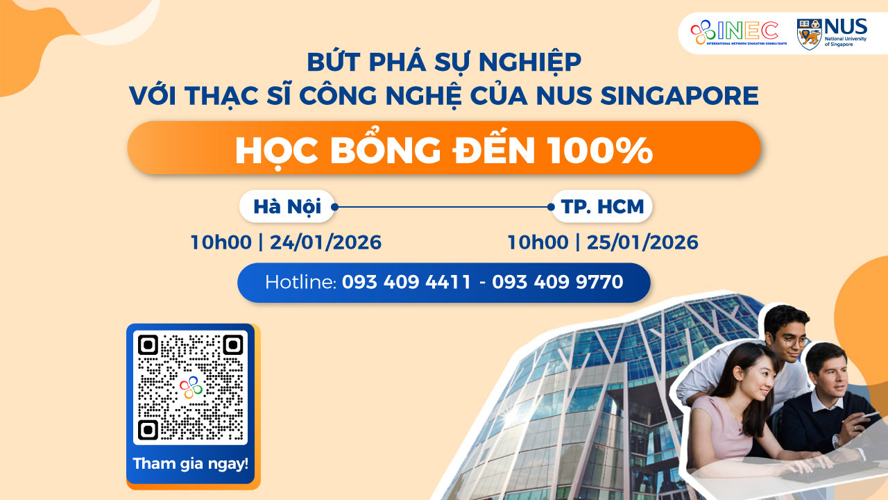 Đại diện NUS và các chuyên gia từ INEC sẽ trực tiếp chia sẻ thông tin, tư vấn 1–1, giúp làm rõ: